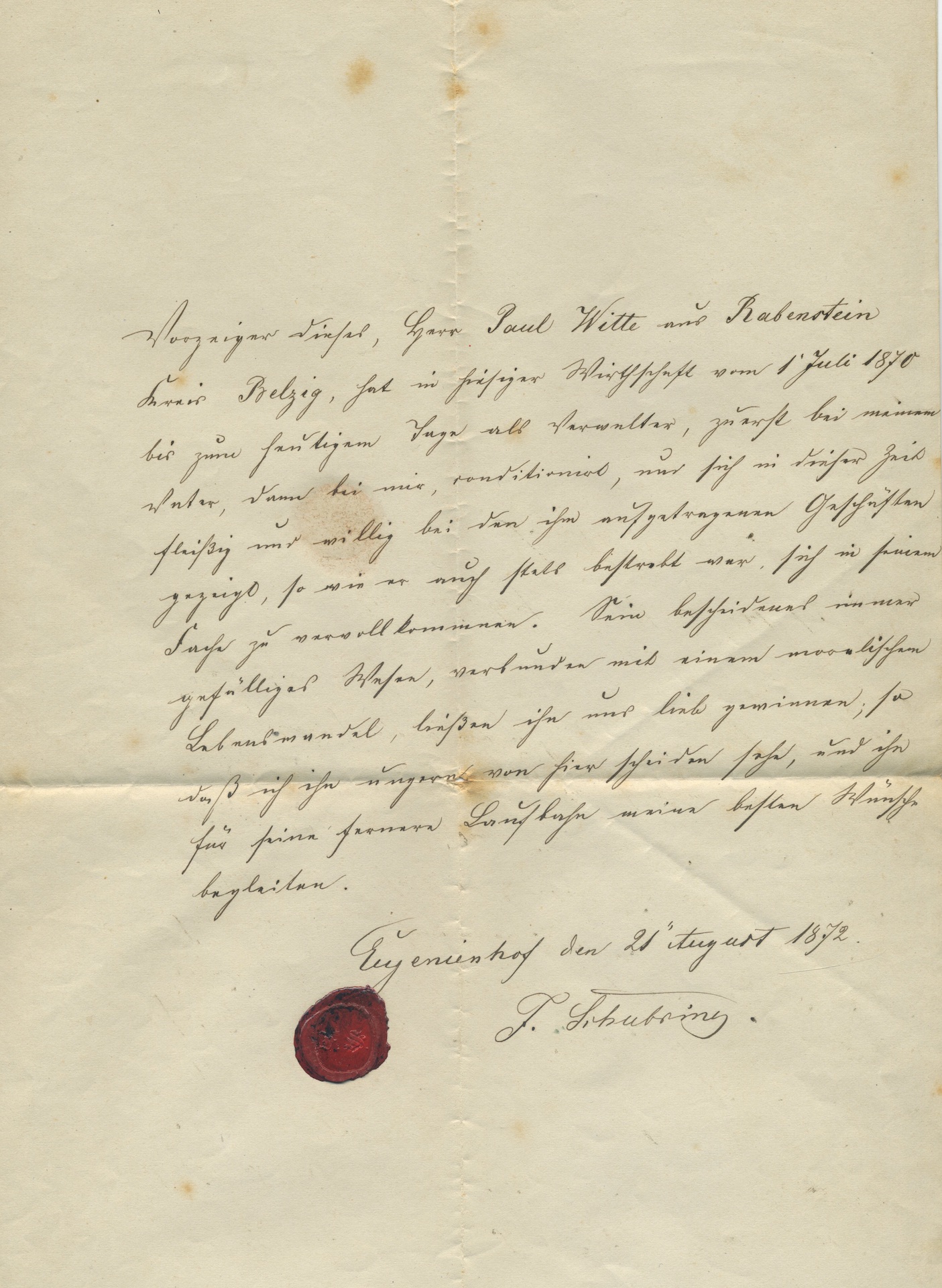 F. Schubring, Gutsbesitzer und Oberamtsmann, Freund von Wilhelm Witte, auf dessen Gut in Rothenburg an der Oder (Neumark) Paul Witte 1870-1872 als Landwirtschaftseleve lernte