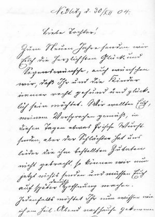 Hugo Becker (geb. am 5.10.1842 in Potsdam) war Klempnermeister; sein Brief von 1904 richtet sich an seine Tochter, Grete Schünemann.