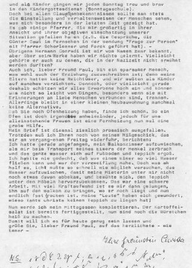 Der Briefwechsel zwischen Paul M. und Christa N. (1922-2009) dauerte von 1972 bis zum Ableben von Paul M. 1995 an.