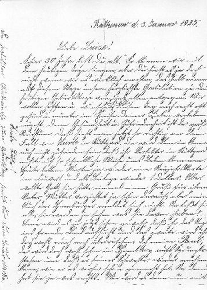 Der Brief von Albert Zabel aus Rathenow ist an dessen älteste Tochter Luise Zinnow zum 30. Geburtstag (1925) gerichtet.